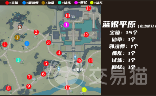 蓝银平原左边部分玩家就能找到15个宝箱,数量还是比较多的。无论是在草地上还是在古老的遗迹,旁边都有机会找到宝箱。玩家在将宝箱打开之后就可以得到一些仙品药草,可以有效提升魂力,甚至还有可能会得到魂技残卷。