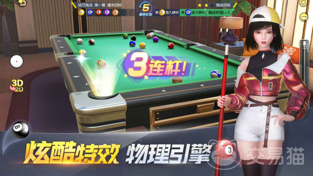 除了各种还原度极高的真实台球设定之外,里面还会有大量炫酷的特效,可以操控台球,展开一场真实的物理引擎对抗,为了能让玩家更有参与感,里面会设定大量的赛事,能通过不断挑战关卡证明自己的台球能力,每一次击球都有真实的对战体验,另外还有很多角色引导玩家击球,击球进洞之后,还会呈现炫酷的特效。