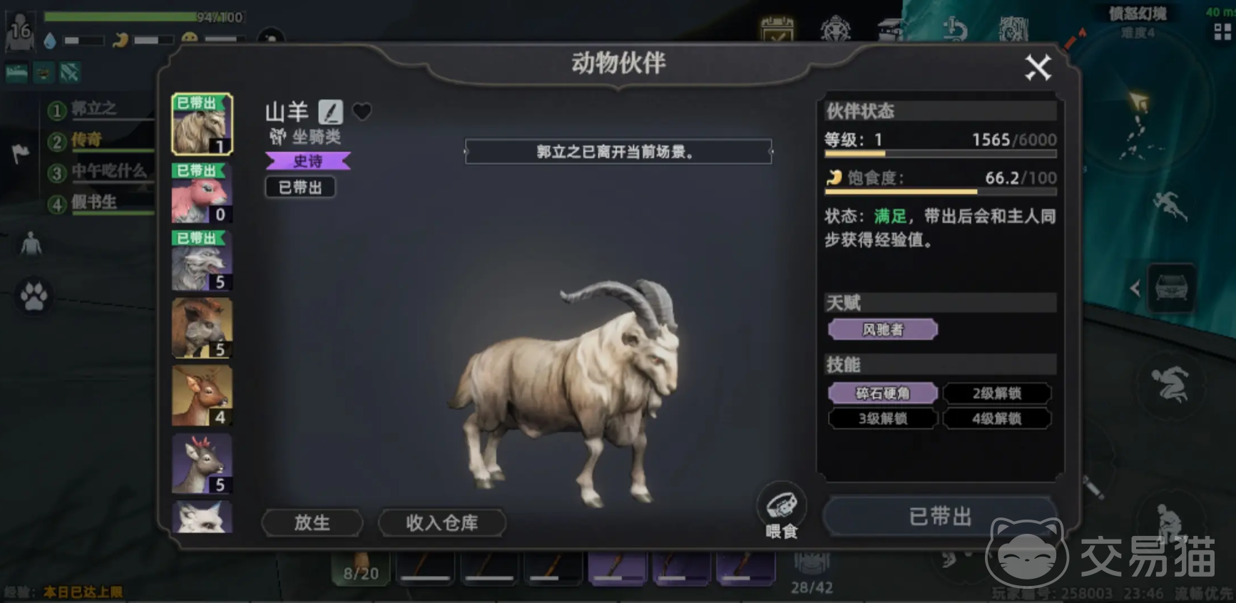 黑猪也很推荐大家选择,功能和野猪差不多;第三只就是山羊,它善于对石材进行采集,石材队伍房屋建造,工具的制作都非常的重要,只要前往雪山混沌光球区域,就有比较大的希望可以捕获。