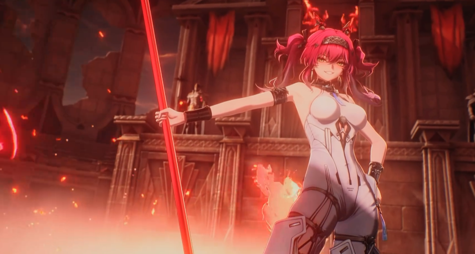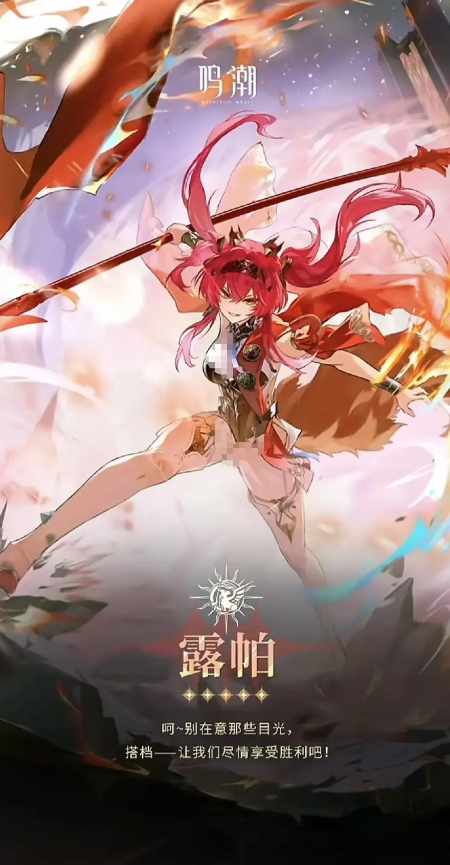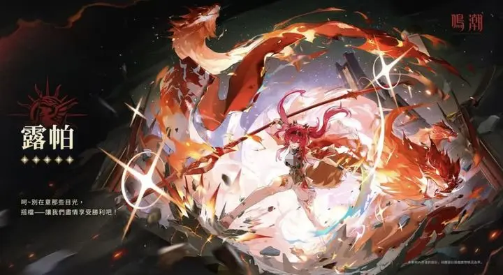 露帕是五星的火系角色,以热熔伤害作为核心,兼具输出和队伍的增益效果。共鸣施展后,她会朝着敌方投掷旗子,使用期间能恢复自己15点狼焰,敌方受到热熔损伤,并对敌人进行持续8秒的标记,在使用共鸣技的一定时间之内,都可以放出凶噬,也能在较低的半空使用。
