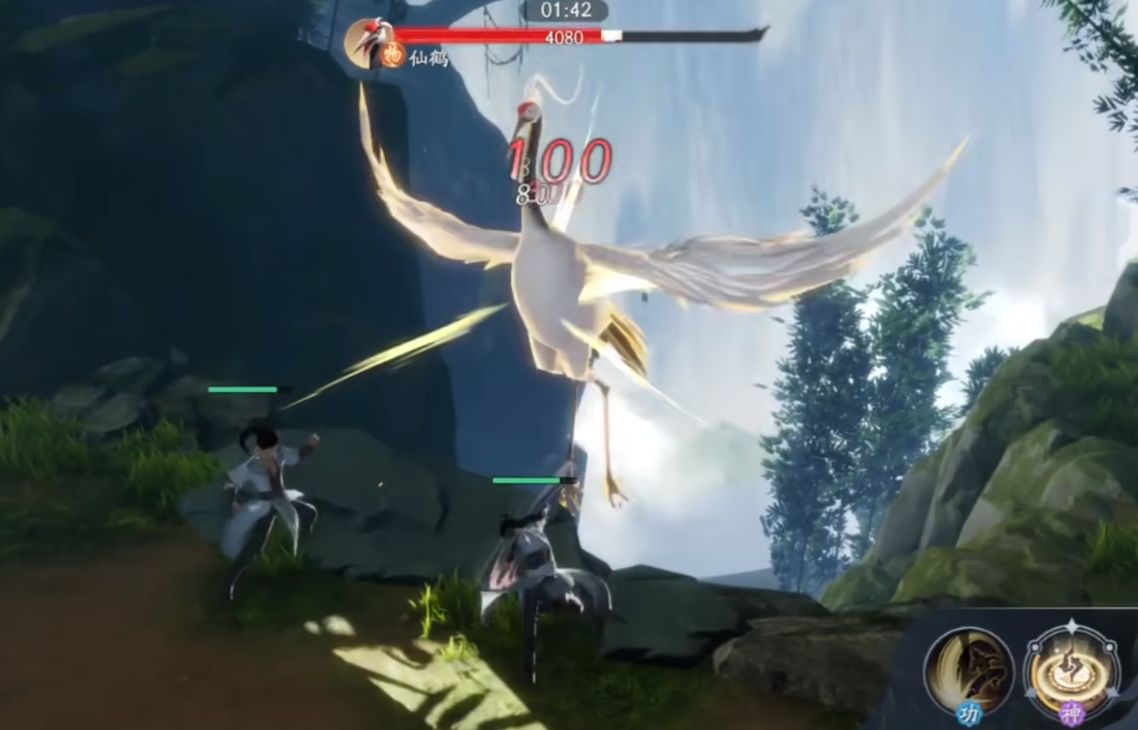 玩家选择捕捉仙鹤是。仙鹤肯定会反抗,这时候玩家就需要利用自身的技能跟战斗技巧来轻松的应对。在技能释放时,玩家要注重顺序,另外玩家自身也需要躲避仙鹤的攻击,并且要不断的削弱仙鹤的体力,当仙鹤体力不支的时候,玩家这时候就能够顺利的捕捉仙鹤。