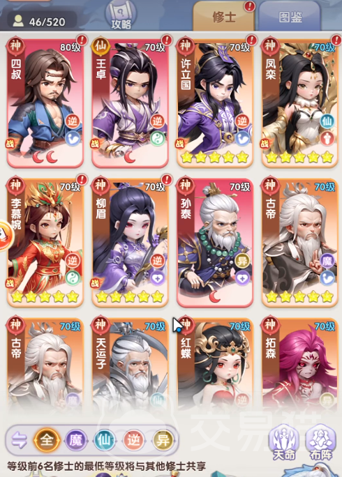 作为一个通过IP改编过来的仙侠游戏,里面自然会有很多经典的角色可以让玩家使用,可以带领这些角色,组建不同的阵营,带他们一起去开启一场逆天修行,游戏里会有很多不同的章节副本,可以供玩家挑战,能在不同的模式中选择相应的角色和技能,另外在对战的时候还可以搭配一些特定的法宝,这样可以让角色有更加优秀的战斗能力。