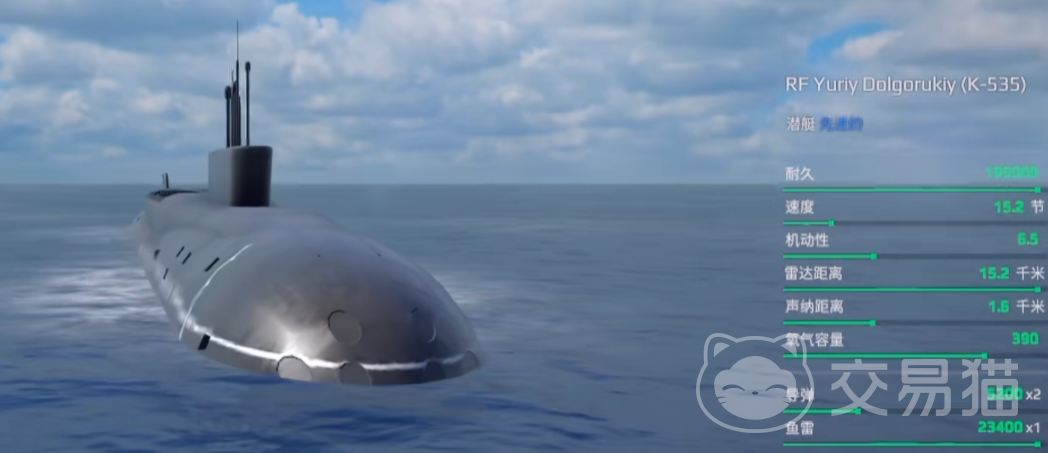 100式核潜艇以其庞大的体型和厚重的装甲著称,国产核潜艇,这艘潜艇在航速方面表现平平,潜行速度仅有不到11节,但其血量高得惊人,超过30万,是当前游戏中最能抗的潜艇之一。然而,它的氧气含量仅为78,续航能力较弱,需要玩家灵活掌控战斗节奏。在武装配置方面,它配备了多达五个导弹卡槽和一个鱼雷卡槽,特别是其搭载的东风17导弹,使得它在火力输出上极具震慑力。总的来看,这艘潜艇价格不菲,但火力强大、血量夸张,适合追求极致输出和抗压能力的氪金玩家或高强度肝帝。如果预算有限,也可以退而求其次,选择火力和性能较为均衡的台风号作为过渡。