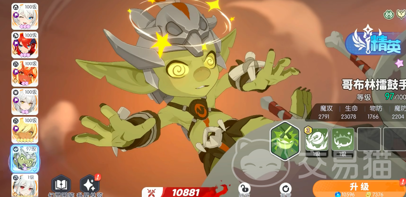 在阵容方面可以选择魅夜之守芬里尔、屠龙勇士齐格菲、炎魔伊芙利特、仲夏夜之梦奥伯隆妮、光耀元素洛瑞林、哥布林擂鼓手,这6个角色当中,前5个要升至100级,哥布林雷鼓手升至97级即可,而且这个组合阵容当中,前4个角色都比较好获得,而光元素洛瑞林则需玩家进行抽卡,比较考验运气,之所以将该角色放阵容当中,是因为该角色的大招光速踢可以直接踢飞单体目标并施加感电,随后连续攻击目标,即可造成690%的物理伤害。