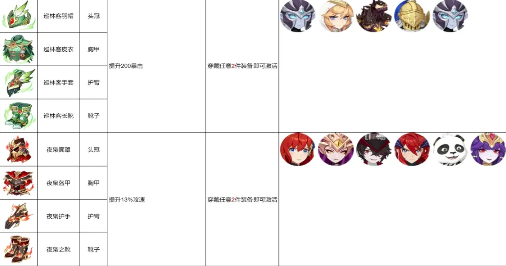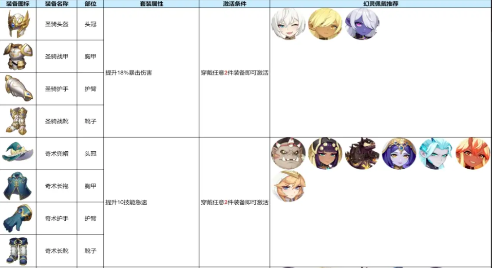 其余的一些套装装备,小编也在文章当中整理成了表格图片,玩家可以通过查询这些图片,直接了解套装属性、推荐穿戴的幻灵以及正确的激活条件。如果你还想对龙魂旅人的其他攻略进行查询了解,可继续关注豌豆荚哦。