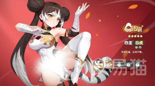 第4个角色是四圣白虎,作为游戏当中的刺客角色,在战场上有着非常突出的表现,目前在开服活动中有机会获得,不过白虎在前期会缺乏阵营加成,集齐龙魂碎片后才可进行队伍组成。以其能力来看,非常适合于中期的玩家。