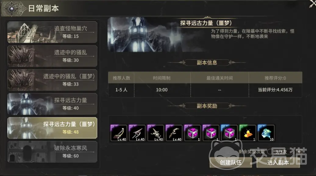 这个阶段有几个副本最好是可以将次数用完的,首先就是龙之巢穴,这个是很标准的经验副本,该副本一天可以进入5次,是快速升级的重要渠道,如果有经验药水的话最好一起使用,这样升级的速度会高于其他人,然后是深渊裂隙,这个是世界级别副本,新手玩家大致只需要参与就可以了,打不过也是没有关系的。