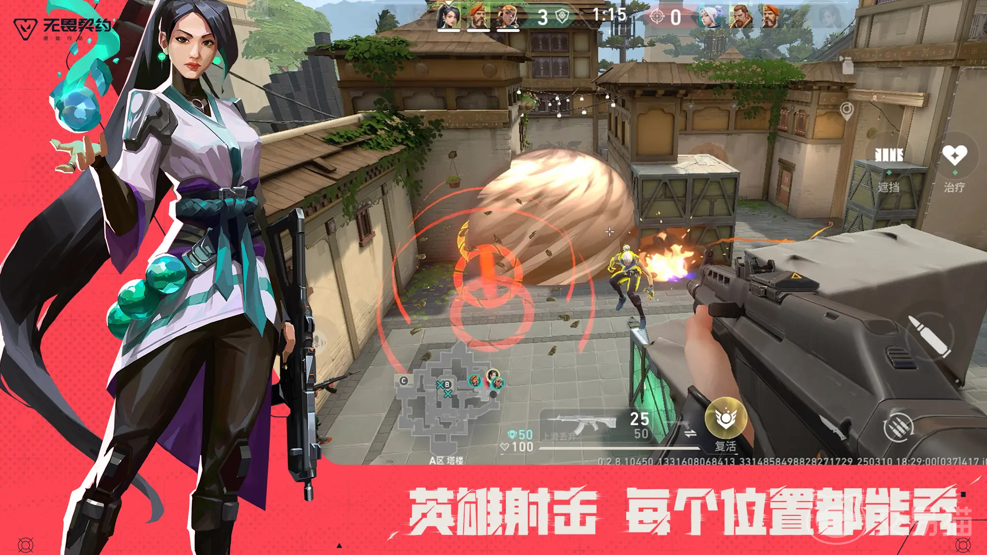 无畏契约源能行动的核心玩法是5V5战术对抗,玩家将被分为进攻与防守两方阵营,在不同的地图场景中展开激烈角逐。与传统射击游戏不同,这里的角色并非千篇一律,而是有着鲜明的定位与独特技能。游戏中,角色被划分为决斗者、先锋、控场者和哨卫四类。比如决斗者“不死鸟”,他拥有浴火重生的强大技能,在关键时刻能死而复生,扭转战局;而哨卫“贤者”,则擅长利用技能恢复队友生命值,还能创造冰墙阻碍敌人行动,是团队坚实的后盾。玩家需要根据战局和团队需求,合理选择角色,通过巧妙运用技能与队友紧密配合,制定出有效的战术策略,这无疑大大增加了游戏的策略深度与趣味性。