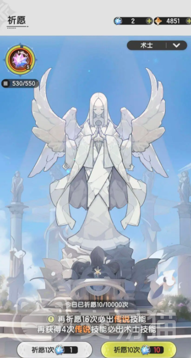 大家在达到一定等级,可以转职的时候,还会职业等级要求,大家可以前往祈愿女神像,去抽取技能提升等级,这个抽取道具可以通过主线等获取,建议大家有10连就直接抽,不要积攒不然可能会影响战力。