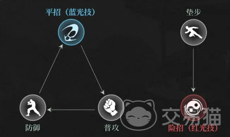循环克制:普攻攻击被平招克制,平招可打断普通招式,反之行不通;平招被防御克制,防御又能防御平招,防御成功后还能选择防御反击或化解;普攻克制防御,普攻能破防并转化为投技。