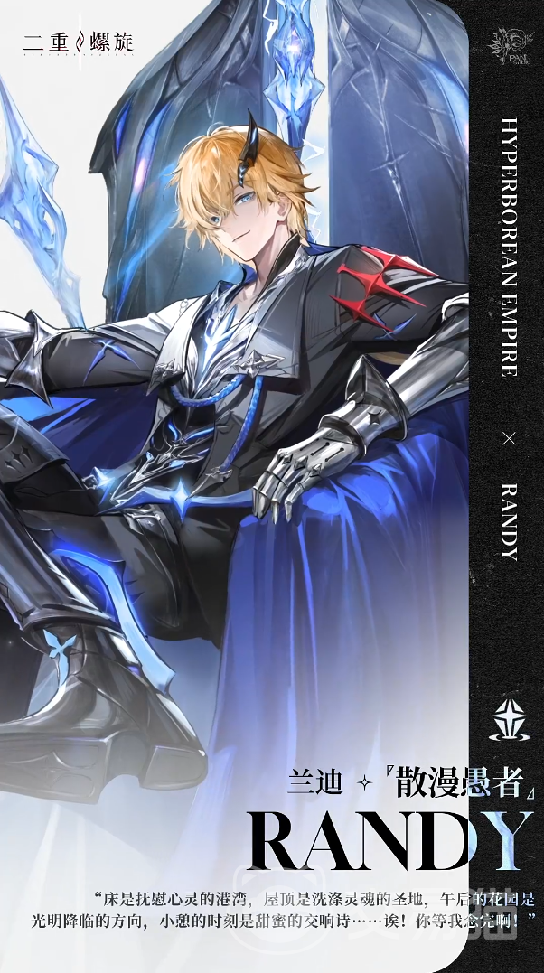 第二个角色叫做兰迪,他的外形条件也非常优越,整体形象相较于煜明的阴郁帅气,他则更加偏向于阳光的王子。他是四星的雷属性角色,精通使用单手剑。与煜明的输出型不同,他的能力会更偏向于防御,制造护盾这一块。