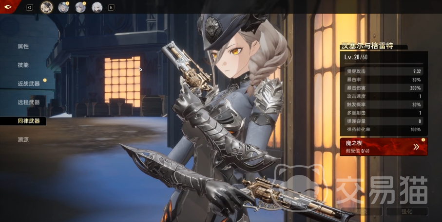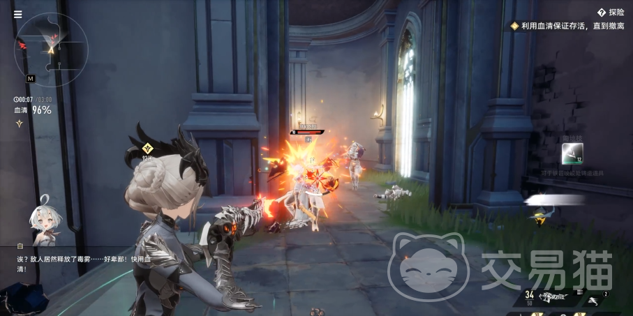 2技能”火药酬宾”,将远程武器切换成双枪,此时只能释放技能以及射击,在此期间她无法移动,进行射击时,对前方所有敌人打出伤害,射击持续时间内,自己每隔0.2秒获得1层攻击速度提高,叠加上限35层,该时间内她受到的伤害不会产生僵直,需要持续消耗神智,下降到0,或重新使用时收回手枪。