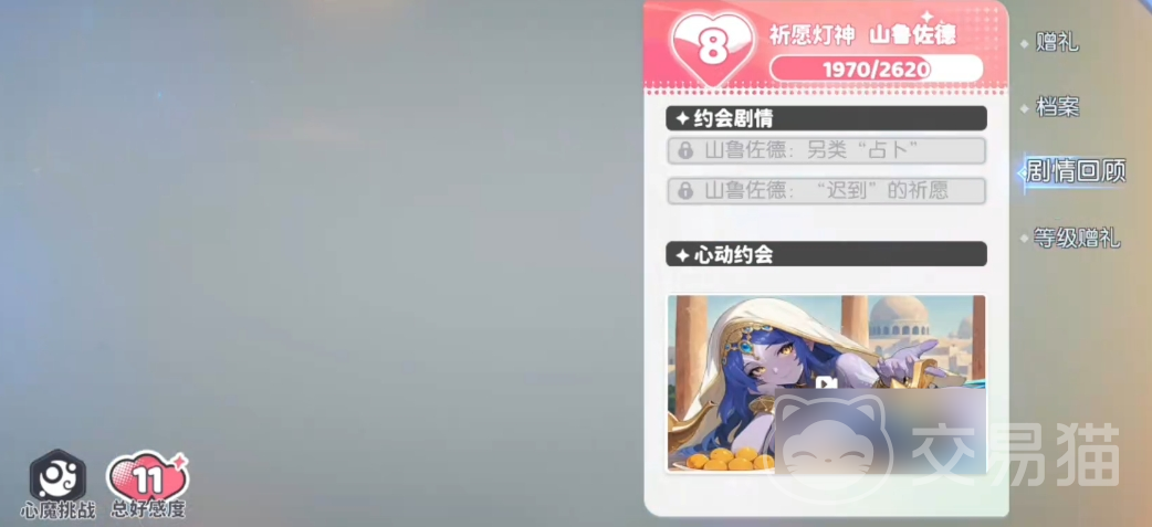 另外还能通过角色的心魔挑战来增加好感度,不过这个玩法每天只能挑战5次,每个关卡也只能通关一次,通关后能获得好感度和记忆碎片,集齐角色的记忆碎片能解锁和角色的约会互动。携带角色上阵出场的话也能提升好感度,达成3次能获得10点好感度。