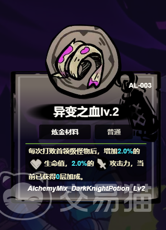 异变之血是具备独特功能与战略价值的增益道具,核心作用在于为玩家提供攻击力增幅,每次击败首领级怪物后便能激活效果,初始可提升一定比例的攻击力,并且该增幅效果可随着收集数量叠加,在毒气召唤流等特定流派玩法中,异变之血更是提升角色战斗力的关键道具,玩家携带并积累后到挑战最终BOSS时,能凭借多次叠加的血攻效果,增强自身输出能力,从而更顺利地推进通关进程。