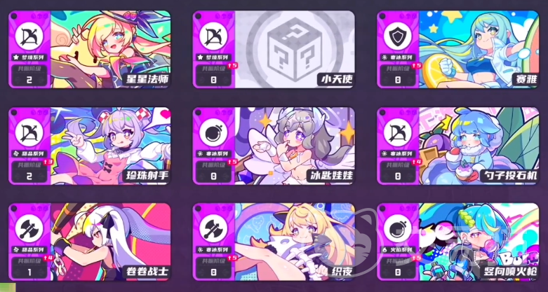 游戏里可以选择的角色非常多,总共有六种不同的类型,分别对应着生产射手,坦克,辅助,特殊,但是在对战的时候,这些角色是没有办法指定选择的,而是通过开盲盒的方式获取这些角色,首先就是t0级别的星星法师,这是一个适合近距离作战的角色,这种设定,代表着角色的生存能力也是比较强的,在对战的时候能借助这些技能,产生高额的输出伤害,不管是常规的战斗,还是高难度的对战场景都是适用的。