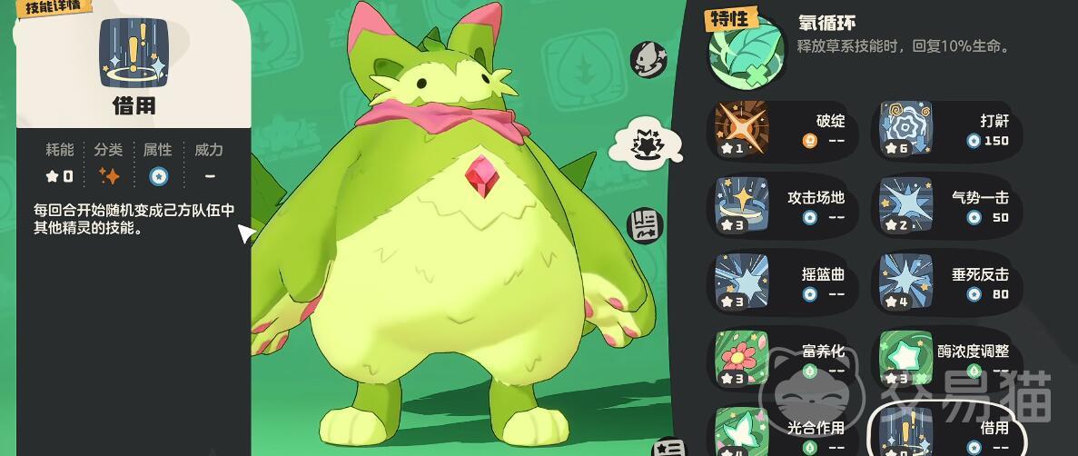 魔力猫的核心优势在于特性“氧循环”与技能的搭配,推荐寄生种子:开局优先释放,每回合吸取目标8%生命值,持续削弱敌人并自疗,而光合作用:回复30%生命值,同时叠加“光合印记”(每层提升技能威力20点),与氧循环形成双重续航。防御:关键减伤技能,开启后减少80%物理伤害,持续1回合,用于硬抗BOSS爆发技(如水晶吞噬者的雷暴),再就是筛管奔流:物攻技能(基础威力60),当自身满血时威力翻倍至120,适合清场小怪。战斗中需保持“寄生种子+光合作用”的循环,触发氧循环回血并积累印记,能量充裕后衔接筛管奔流或光能聚集(草系技能后威力+60)进行爆发。