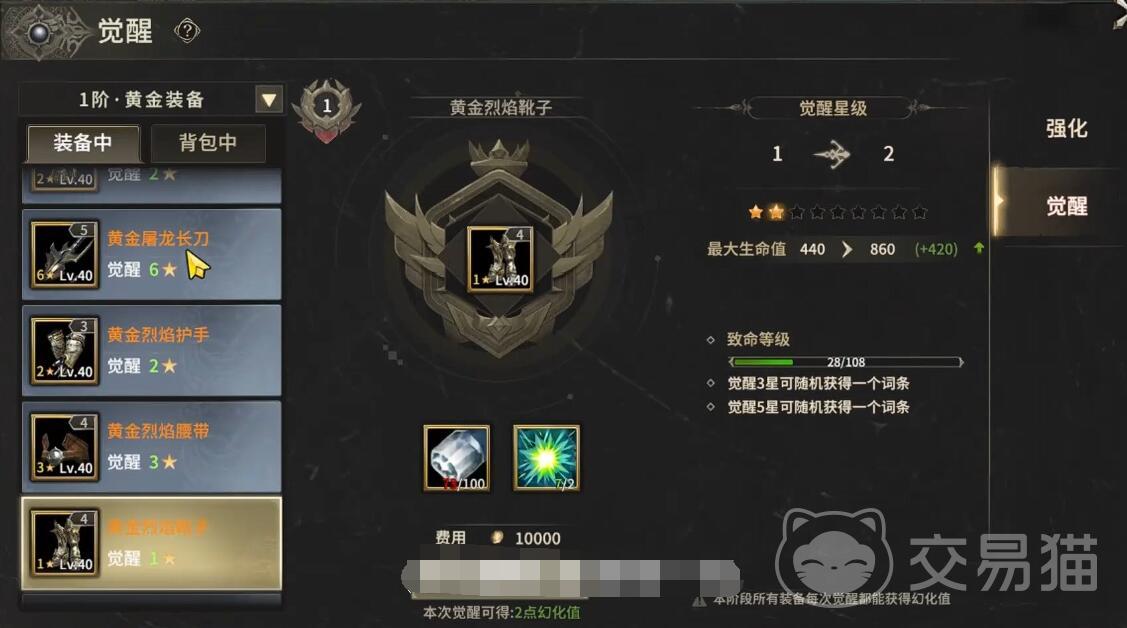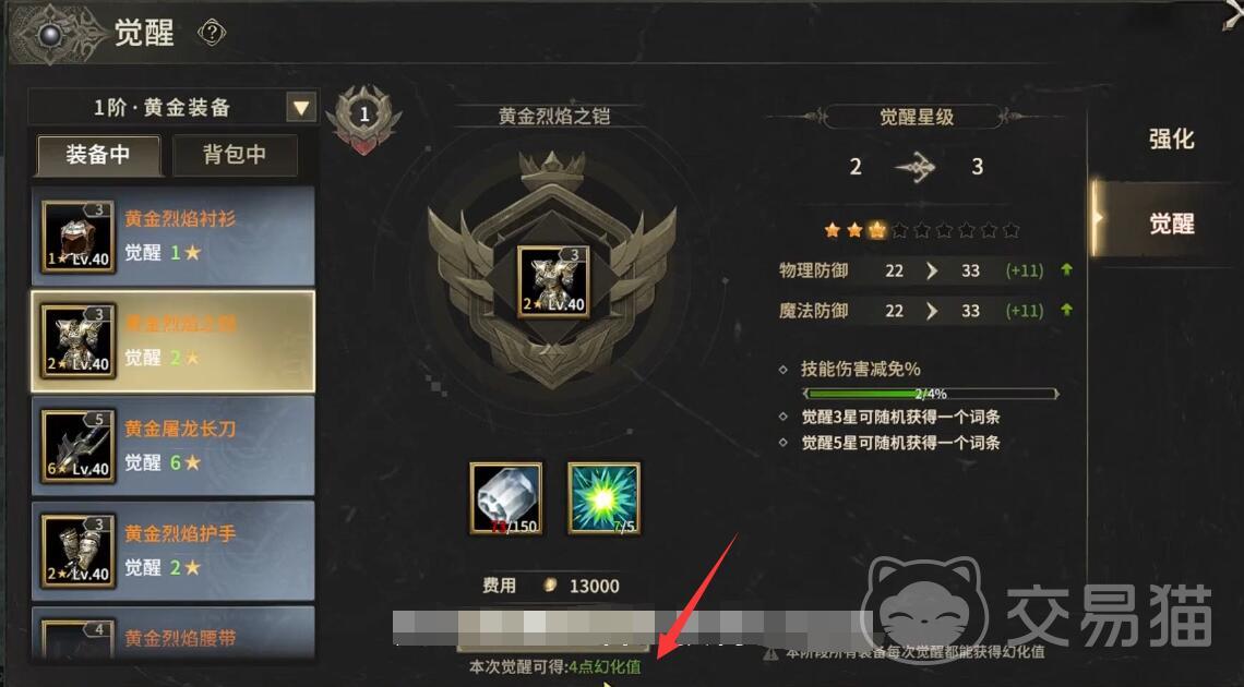 黄金装备的幻化值主要通过觉醒系统获得,每次觉醒都会提升装备的星级,并积累一定数量的幻化值。觉醒1星可获得2点幻化值,3星提升至4点,5星则解锁6点,满6星觉醒后可激活最终外观并额外获得20点幻化值等等。觉醒添加剂则主要来自赛季商店或装备分解。对于平民玩家,建议优先觉醒武器和核心防具,确保每次觉醒都能最大化幻化值收益,避免分散资源导致进度缓慢。