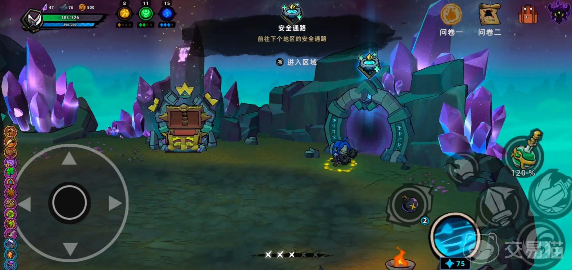 游戏中的关卡设计主要就是高风险高回报,普通战斗房提供基础装备和金币,而精英房则大概率掉落稀有武器或符文。诅咒房会施加负面效果(如降低生命上限或攻击力),但奖励品质更高,适合装备成型的玩家挑战。商店房允许玩家购买武器、附魔或升级现有装备,消耗的铁片可通过分解多余装备获取。泉水房则提供免费回血机会,建议在血量较低时优先选择。