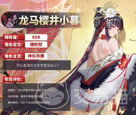 在龙族卡塞尔之门即将迎来的新版本中,一位全新的SSR角色——樱井小暮,将会在6月5日正式登场。今天小编就带来龙族卡塞尔之门龙马樱井小暮介绍。她是极乐馆的负责人,外表温柔妩媚,擅长游走于各种社交场合之间收集情报,而在战斗中,她则是一名拥有多重控制与支援能力的高级辅助型角色。
