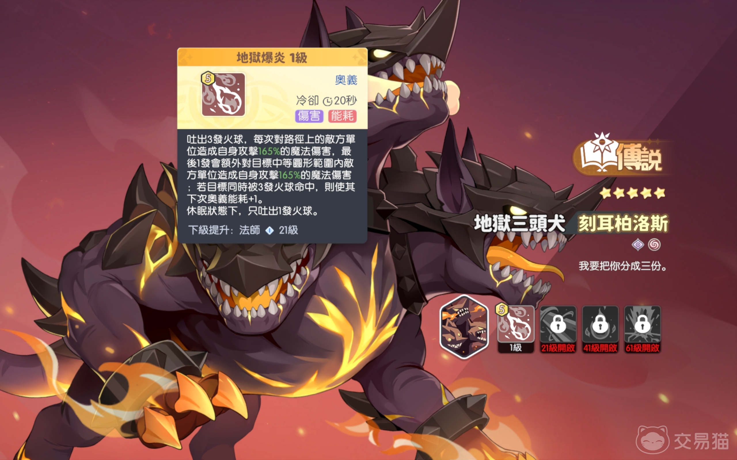 龙魂旅人地狱三头犬完美融合了神话元素与游戏功能性,无论是用于开荒推图,还是去参与巅峰对决,培养这头巨兽,都将让你的冒险之旅变得轻松,己方的主力输出也会有更大的空间去制造伤害。