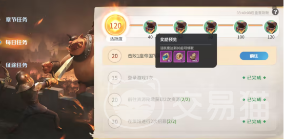 如果想要获得大量的资源,那么第1种方式相对来说特别简单,只要每天完成相应的每日任务之后就可以轻松拥有,游戏中每天都会呈现出不同的任务体系,比如击败野怪或者是采集等等,只要完成了这些相应的任务之后,就可以获得大量的资源,包括粮食以及木材。