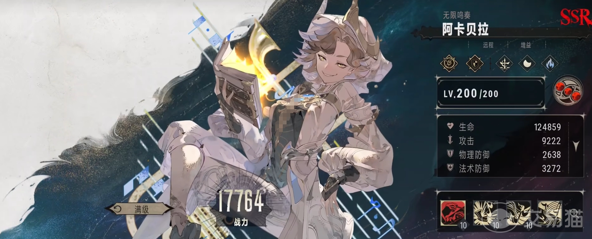 能提升能量值的回复速度、高额的伤害、可治疗全队的特性,令阿卡贝拉在战斗中显得十分的全能,是开荒时很适合用来快速推关的角色,而且可从普池中抽到。