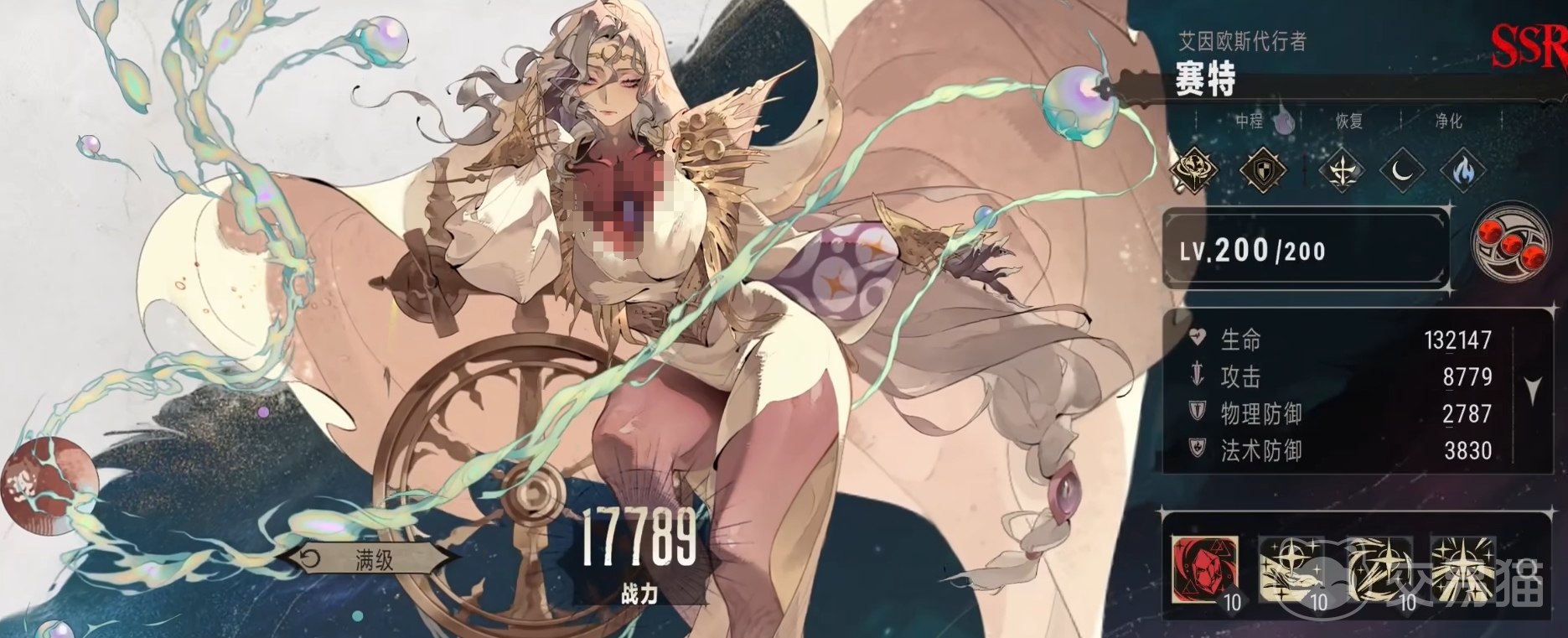 赛特上场后能让队伍更稳定地去获得能量,从而能在战斗中开出更多的大招,进而提升整队的输出能力,再加上较强的回复和净化能力,也令队伍的生存很有保障。