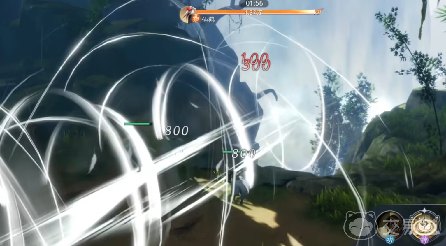 开局之后这只仙鹤会用脚踢大家,但是无法进行翻滚,所以只能硬抗。这时不要放技能,因为仙鹤还会从空中冲刺过来,要是放技能就会放空。等到他回来之后,大家就可以尽情使用所有的技能,这时伤害基本上都能够打满。