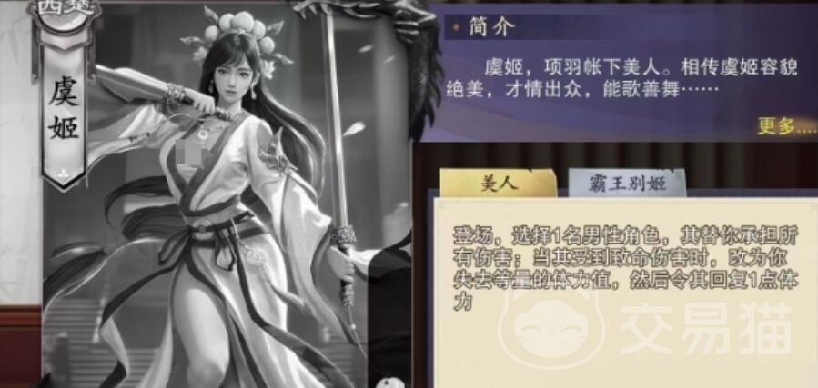 虞姬的一技能“美人”是她的核心生存手段,效果为选择一名男性角色承担所有伤害,但虞姬自身会等量损失体力值,同时该男性角色可回复1点体力。这一机制的关键在于选择合适的承伤目标,优先推荐高防御或高血量的男性角色,如满星陆逊,其群体输出与承伤能力可完美适配虞姬的联动需求。需要注意的是,若敌方爆发过高,单次伤害可能导致虞姬与男性角色同时阵亡,因此需合理控制承伤节奏,避免过度依赖转移伤害。