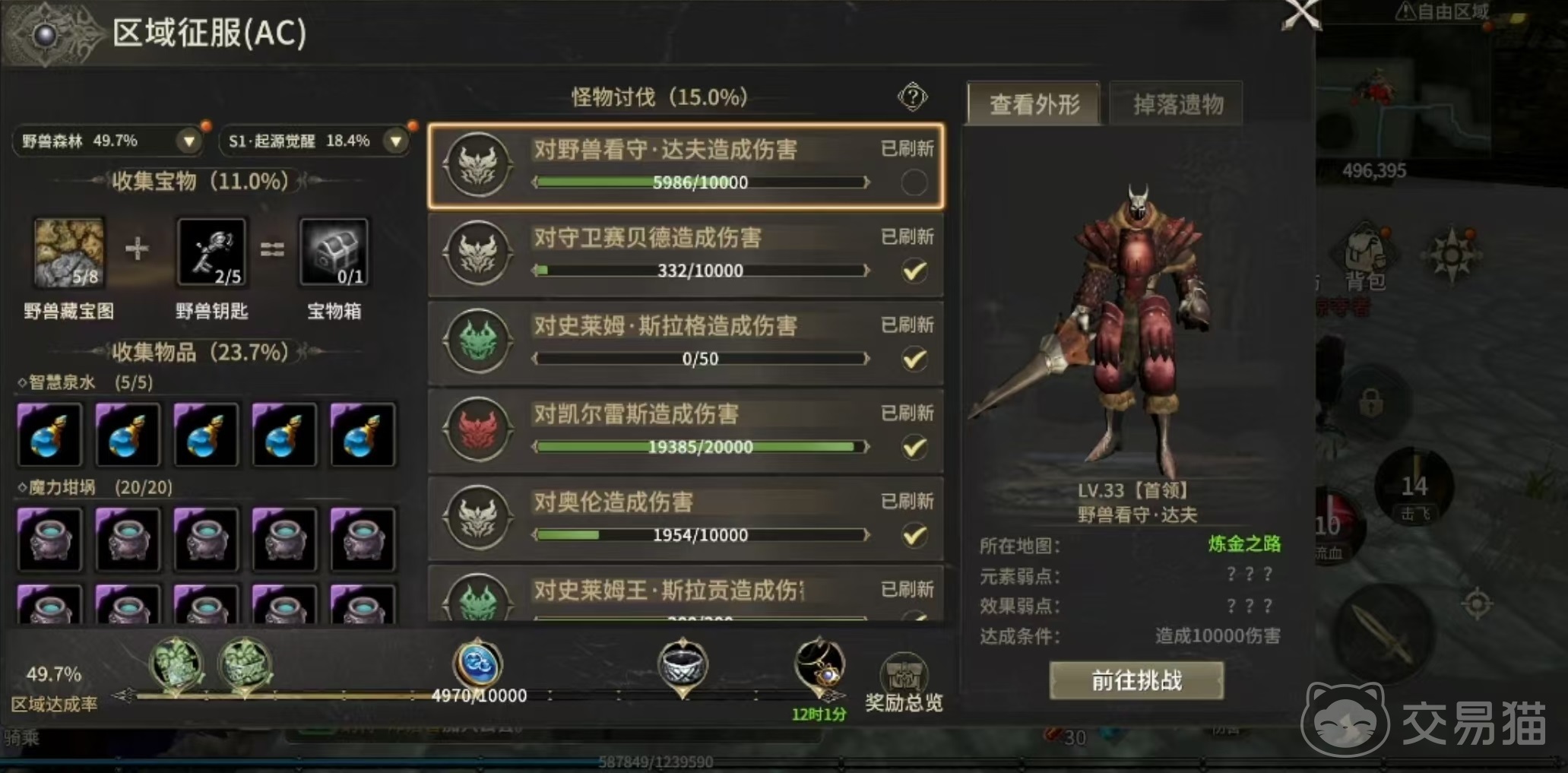 在这项活动中主要包括搜集宝物、怪物讨伐等,其中怪物讨伐主要的是针对地图中的各大精英怪,造成指定数量的伤害,就可以直接完成。这里需要注意的是,玩家需要先遭遇特定首领,然后才可以进行关注操作,关注后在刷新前一分钟就能收到提示。相信大家在打怪的时候经常会遇到这样的提示,某某精英怪一分钟之后即将刷新,这就是为大家刷伤害打下了很好的基础。