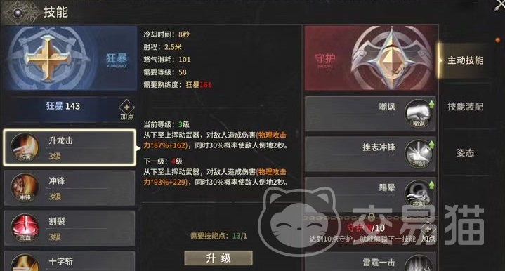 如果选择走守护路线,那么就要做好成为团队壁垒的准备,核心技能是盾击,这是起手技能,可以眩晕敌人,并且嘲讽强制攻击自身,为队友创造安全的输出环境。第2个核心是盾牌格挡,大幅度提高自身的格挡率,减少受到的伤害。第3个核心技能则是生命强化,提高自身生命上限,加强生存能力。