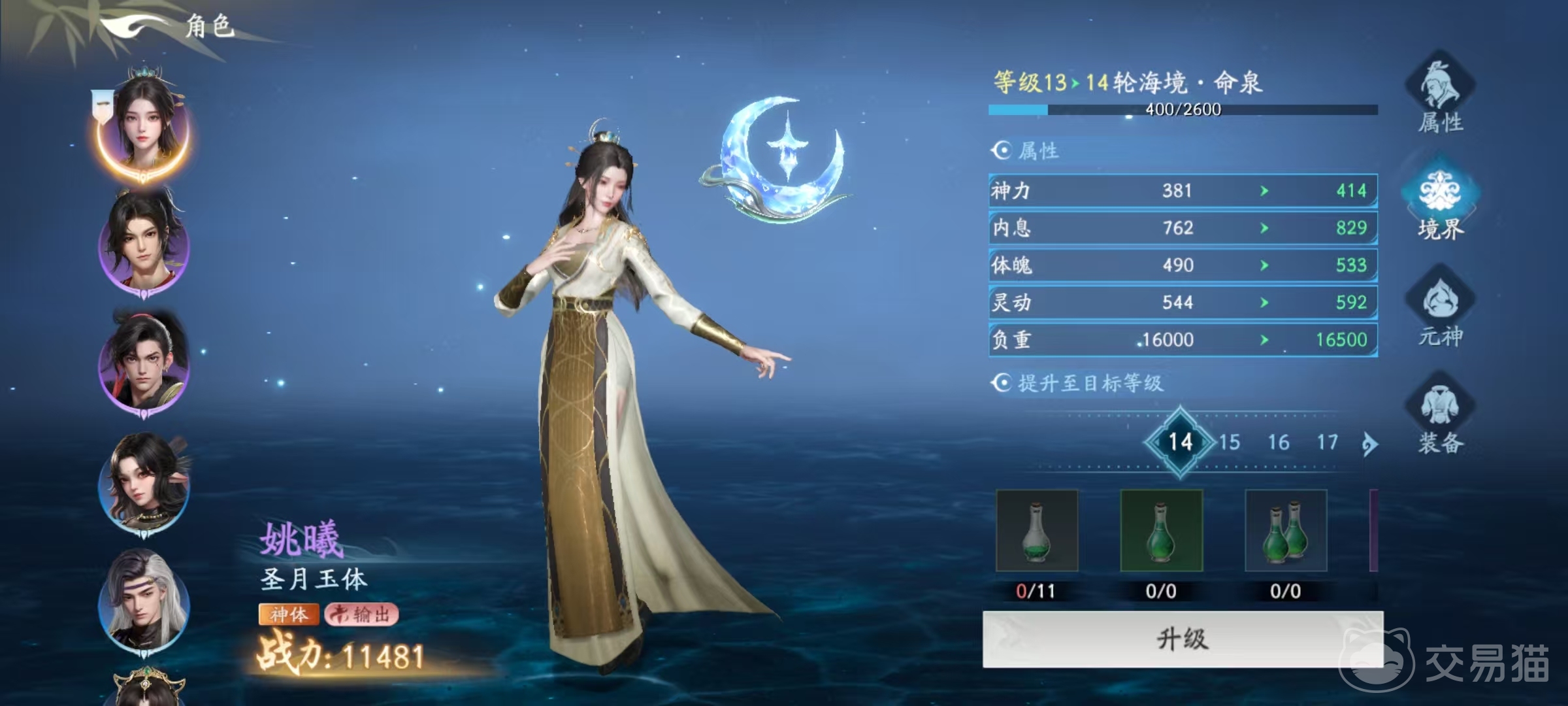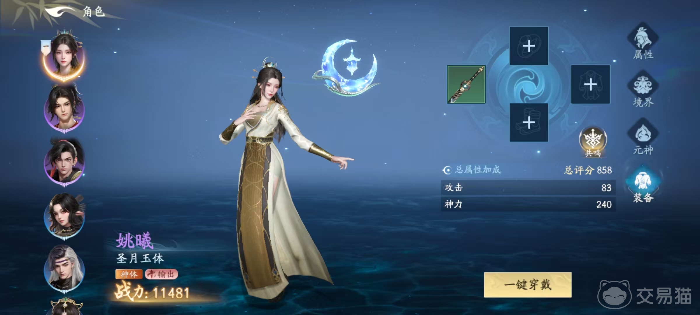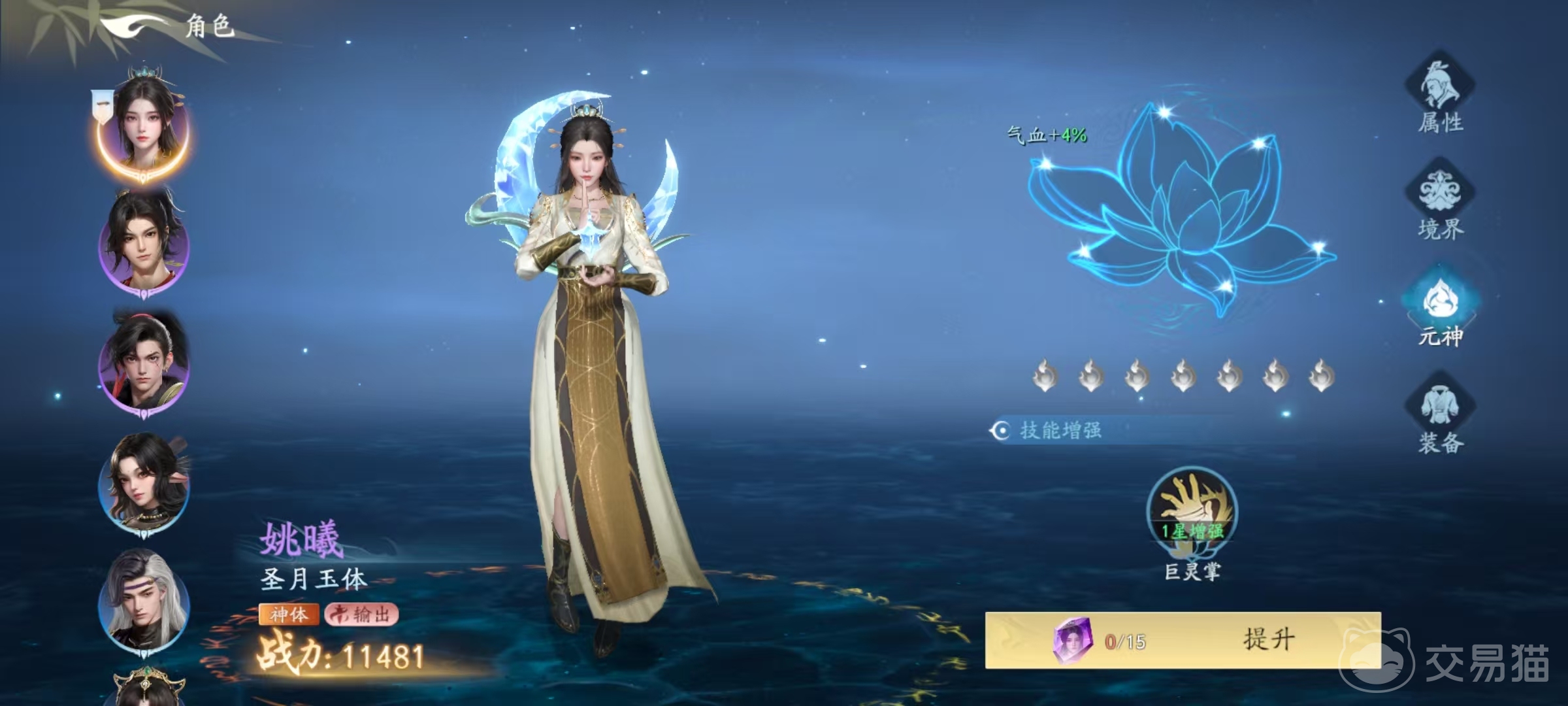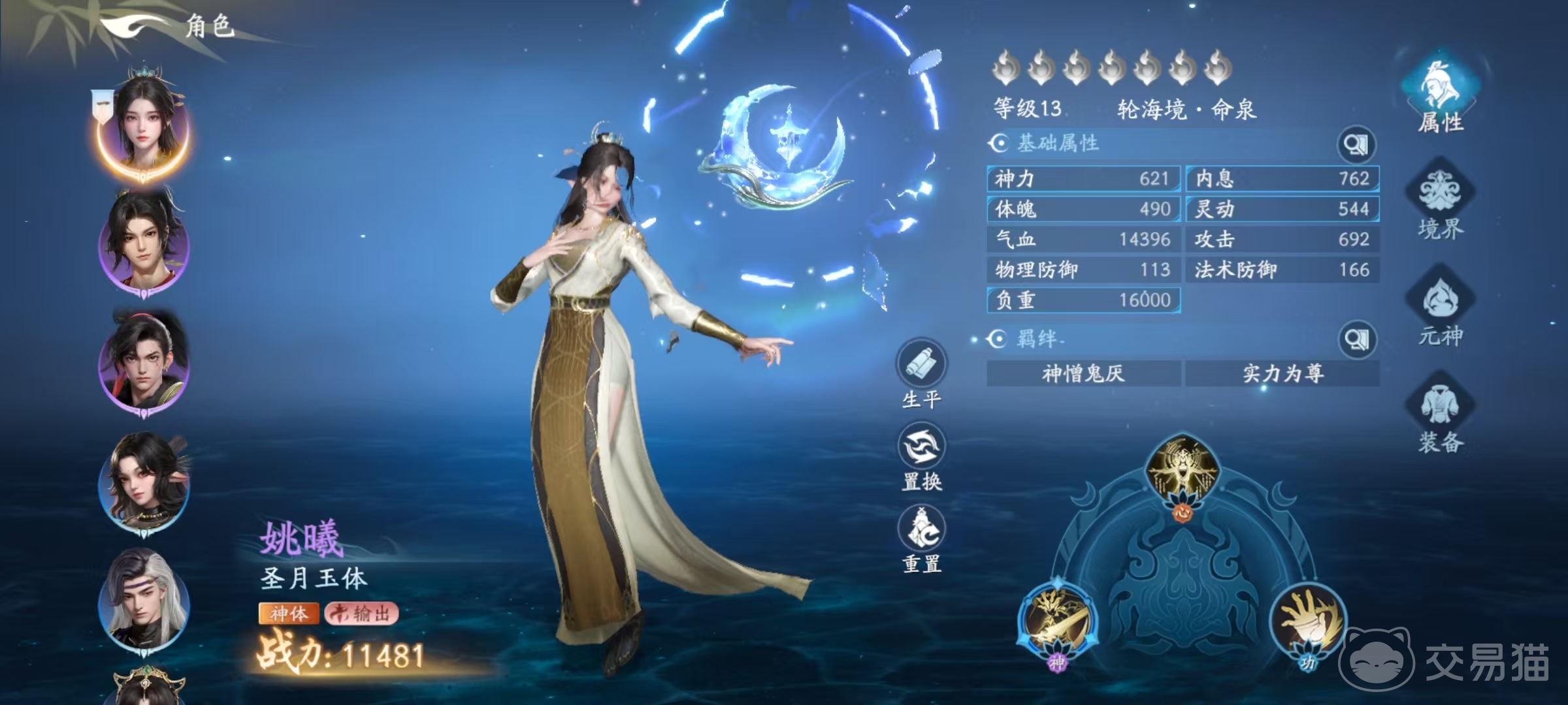 在游戏中,姚曦是属于紫色品质的角色,自身为圣月玉体,是属于输出类型。自身的神通是月宫神裁,可以分别对横排和竖列的敌人造成法术伤害,有几率减少目标的法术防御,持续6秒钟。提升元神之后,该技能伤害系数提升,降低目标法术防御的几率提升,本次攻击还能额外附带10%的无视法术防御效果。