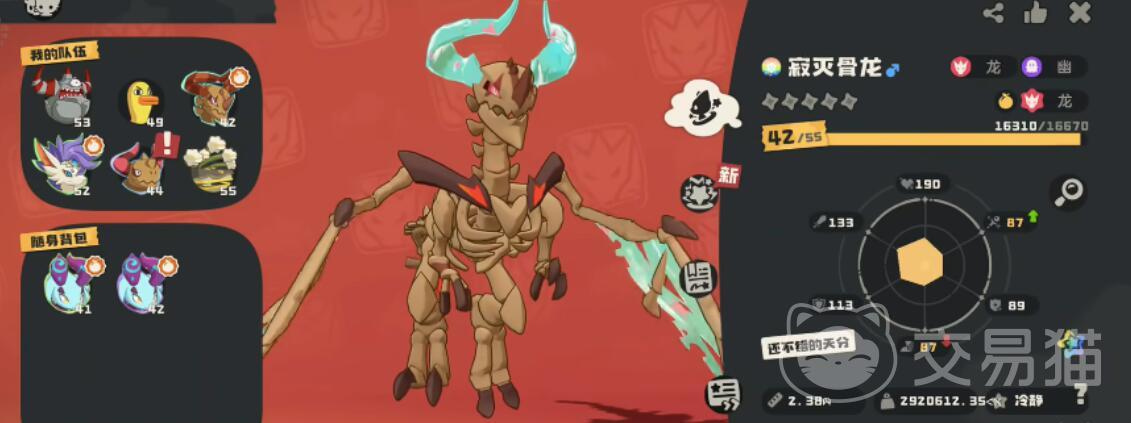 寂灭骨龙适合作为主力输出,搭配“龙之舞”提升攻击力,再配合“龙息连击”进行爆发。由于它对草系和水系精灵有额外伤害加成,可以说输出能力非常不错,而培养时建议优先提升攻击和速度属性,确保先手优势。寂灭骨龙的技能组合灵活,可根据战斗需求调整,如携带“大地宽恕”增强生存能力等等。