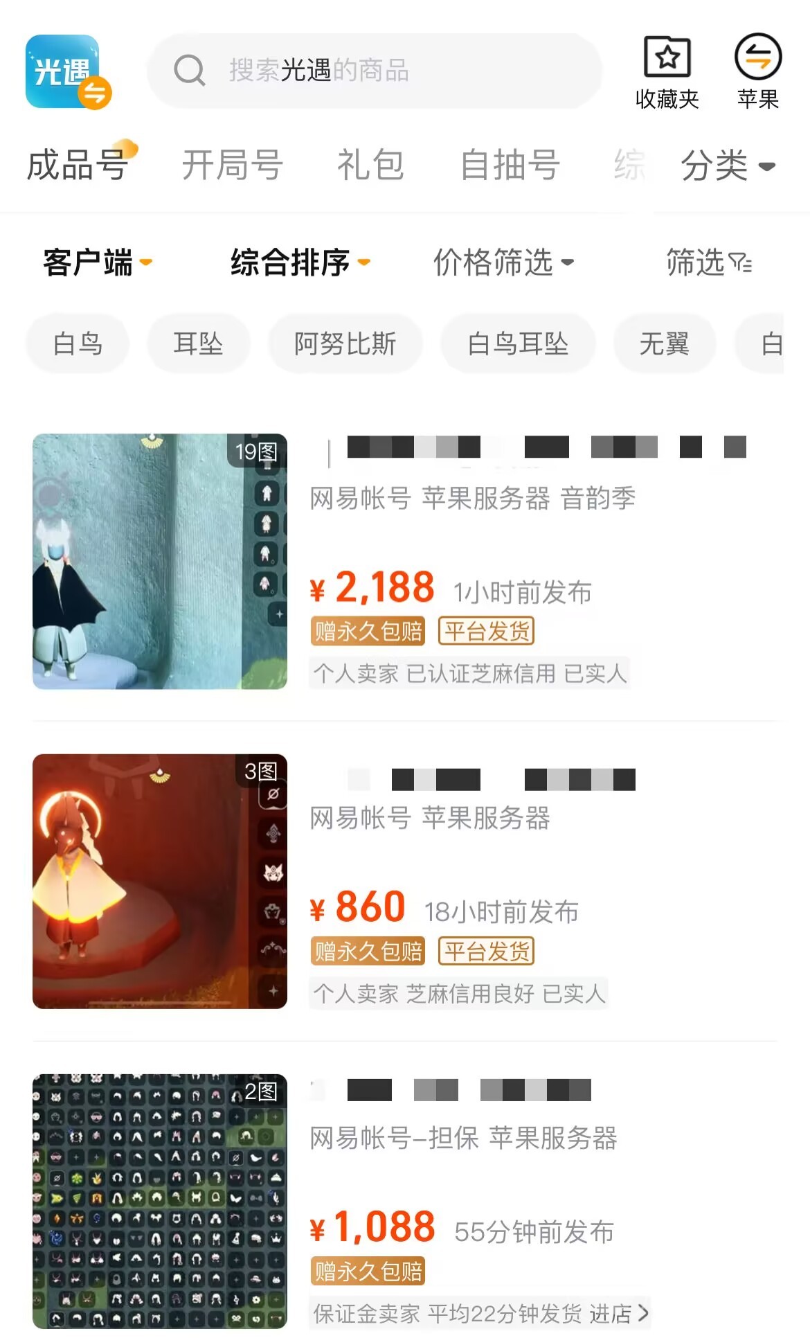 光遇白鸟号多少钱 靠谱的游戏账号交易平台推荐