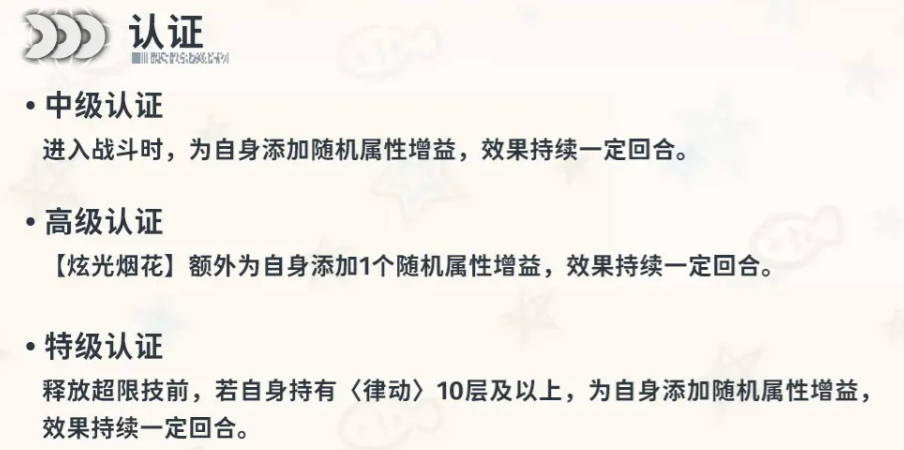 在技能的强化方面,翠鬓的成长也非常值得关注。她的中级认证能够在进入战斗时为自己施加随机增益,而高级认证则让她的普攻额外获得一个随机增益,增加了她的灵活性。最强大的特级认证则是在使用超限技之前,如果她身上有10层以上的律动,她还能为自己加一个额外的随机增益,进一步增强她的超限技威力。这些认证使她在不同的战斗阶段都能灵活应对,发挥出最大的潜力。