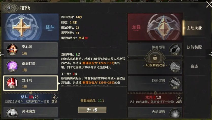 极限龙舞流的核心技能在于龙舞之力,升级此技能可提升整体技能效果,增强技能的伤害、控制时间或增益幅度等,元素掌控对于提升元素伤害至关重要,能让龙骑士在输出时具备更高的伤害上限,龙息术作为远程元素输出技能,在保持安全距离的同时,对敌人造成持续的元素伤害需重点升级。