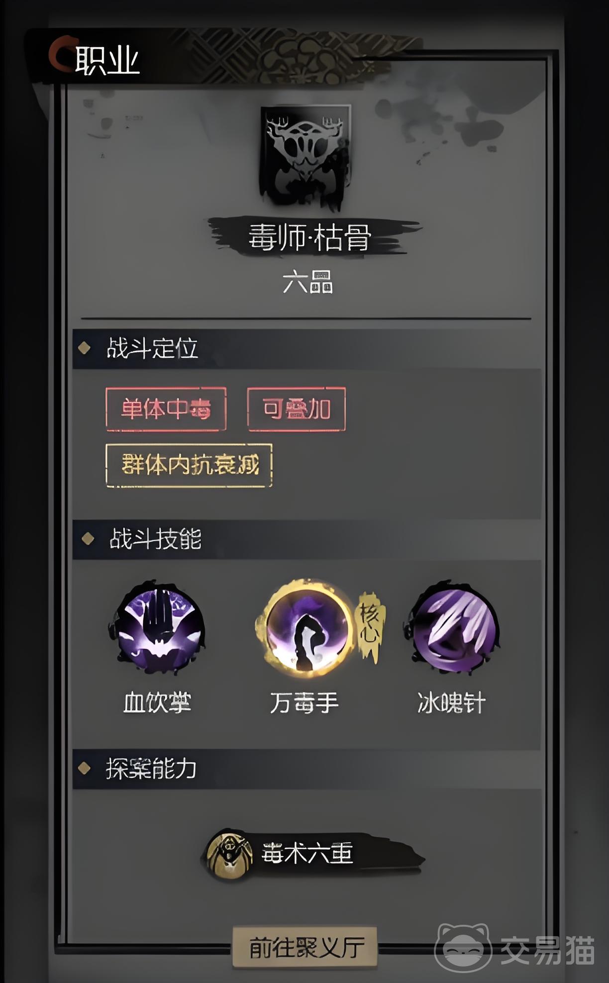 在游戏中玩家们在获得了角色之后,不仅可以选择成为上阵角色来在主线任务中寻找更多的角色,同时也要应对于游戏中的多个玩法。毒师这个职业技能的特殊性,让他更加适合应对于各个关卡的守关boss的对战,同时在夺酒玩法和探索玩法中都能有很好的表现,因此玩家们在获得了毒师这个角色之后不妨尝试在其他玩法上选择这个职业上阵。