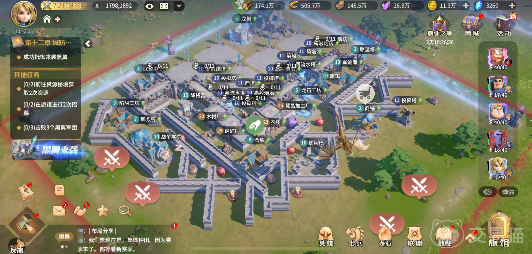 在龙石战争的开局阶段,新手最关键的就是紧跟章节任务的节奏,稳扎稳打推进到第7章。这个阶段不需要急着把所有建筑都升上去,尤其是像装饰类这类与战斗无关的建筑,完全可以先放一放。手头的资源应优先用在主堡、练兵场、英雄祭坛这类能实质提升战力的核心建筑上。落州选择方面,如果你是准备长期混联盟的玩家,建议和盟友一起选定州落脚,方便后续配合和发展;而对于散人玩家,跟着系统推荐的落州落户,不仅省心,还能拿到额外的5000石头资源,这在前期是相当有帮助的。