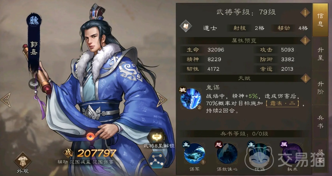 程昱,在策士职业中,曹操阵营拥有程昱和荀彧两位可供培养的将领,而选择程昱的原因与乐进在步兵中的突围原因相似,皆是因为其统率能力更为出色,尽管荀彧的智力略高于程昱,但统率方面却仅有57,与程昱的82相比差距显著。在为程昱挑选宝物装备时,五火神焰扇、皮衣或漆黑道袍与藏甲天书或朱雀宝玉的组合值得考虑,五火神焰扇虽然仍然保留了增加 20%计略损伤的效果,但需要注意的是,其增加损伤的效果并非火灾系统策略所专属。