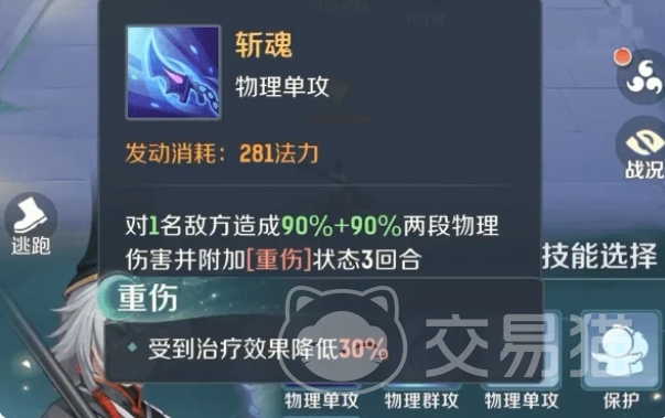 最后就是罗刹这个灵兽,它是个高爆发的输出型角色,打起架是很多玩家都公认的猛,它有个斩魂的技能,能选中单个目标,对其造成两段物理伤害,而且还能让敌人陷入三回合的重伤效果,这期间敌人的治疗收益都会降低,这简直就是给敌人的最强伤害,还有个夺魄技能,能对三名敌人造成物理伤害,不过会消耗自己的气血,但这也没关系,在需要速战速决的时候,这个技能就能发挥大作用。