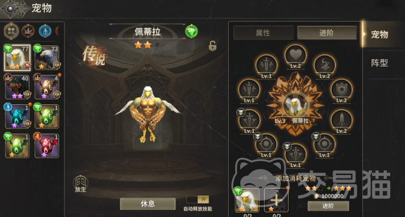 宠物是战斗过程中的最佳伙伴,大家在初期就能通过主线的引导,获取免费赠送的基础类比方说可爱的“小灰猫”等,这一类虽然基础属性不是很突出,但也能提供早起的战斗支援,等到中后期大家抵达一定阶段,就可以参与赛季任务以及竞技场排名,在获取一定赛季币后,就可以在商店中对它们进行兑换,可兑换的宠物中大熊猫就非常强力,能提供范围治疗和群体增益,是众多玩家的热门选择。