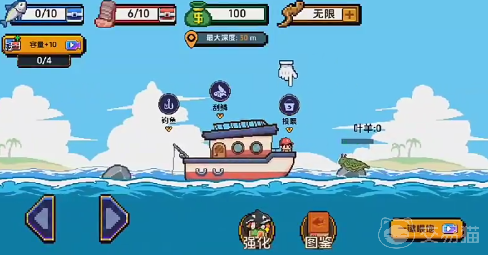 如果玩家想要获取价格更高的鱼类,则必须开启更为广袤的海域,此时,玩家就需要投喂海兔,亦或是海龟一类的生物,来帮助自己进行巡航。