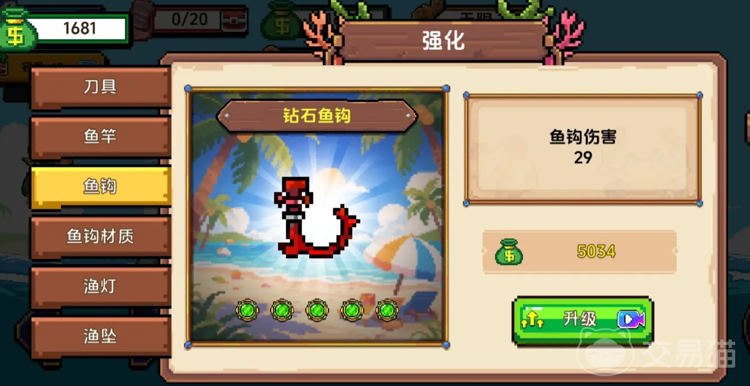 同时,将这些鱼类投喂进入到海上餐厅中,来获取一定的金币,这些金币可以用于升级和强化,鱼竿以及刀具,当然,玩家也可以用于购买鱼钩和鱼坠,从而增强自己在后续的钓鱼能力。