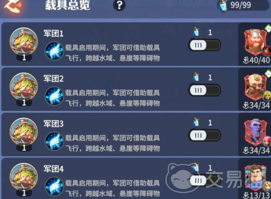 如果玩家已经成功的解锁对应的载具之后,可以在军团中合理的使用载具,在对应的页面会有选择,玩家直接选择就可以携带。另外,在选择使用的时候,玩家会消耗一点动力的魔液,停止使用的时候,就不需要消耗了。