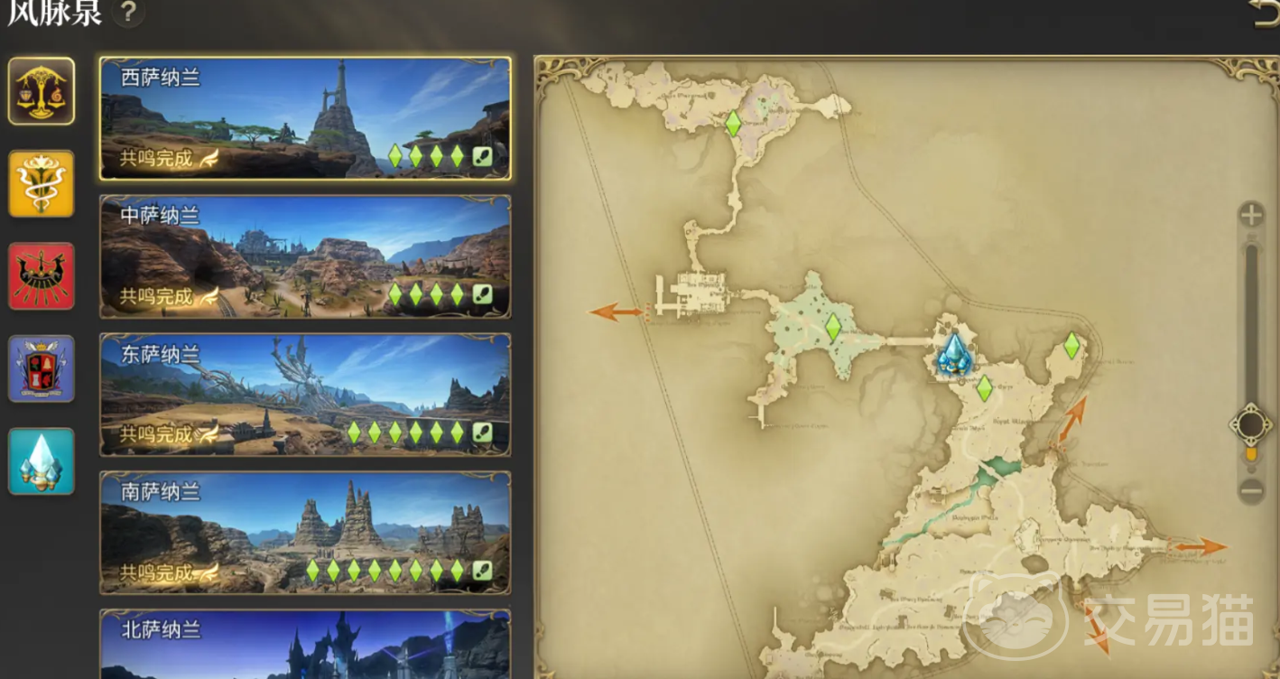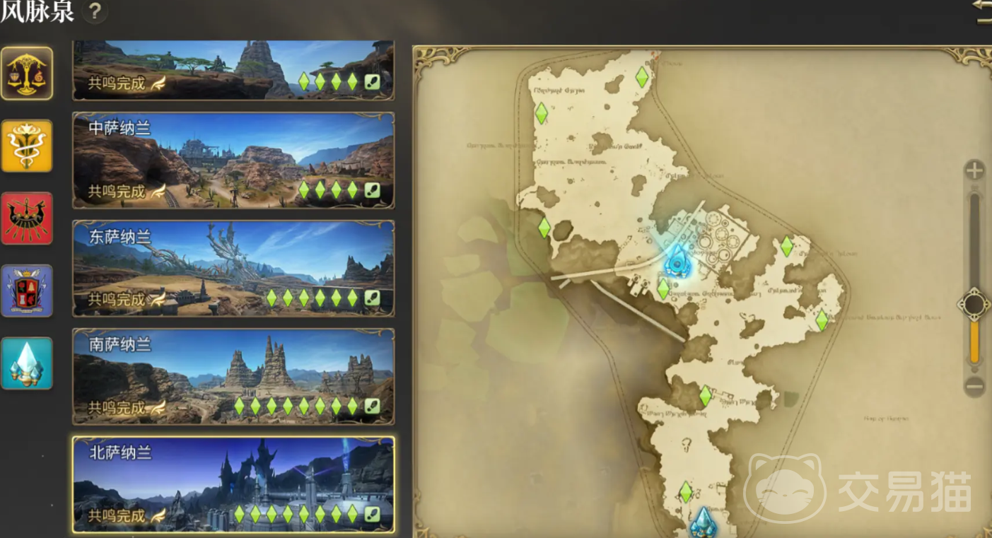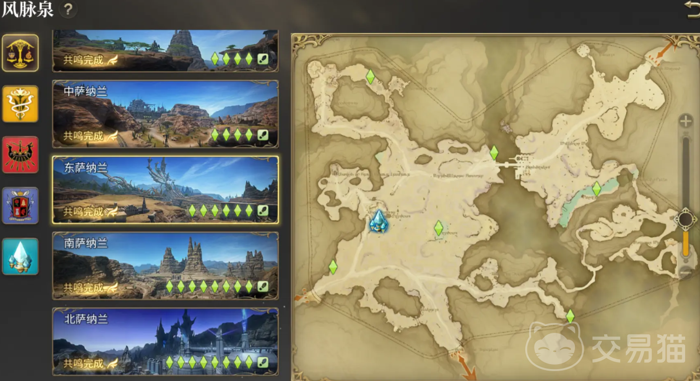 南萨纳兰区域的四个风脉泉,位于传送点的附近,玩家依次按照主线进行寻找,就能够获取他们了。
