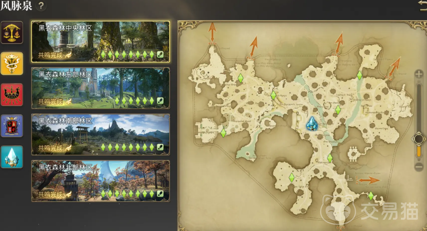 黑衣森林当中的风脉泉数量,实际上是比较少的,由于需要开设风脉泉的地区并不多,固然玩家在探索主线期间,则可以通过依次探索任务点的方式,来全部开启。