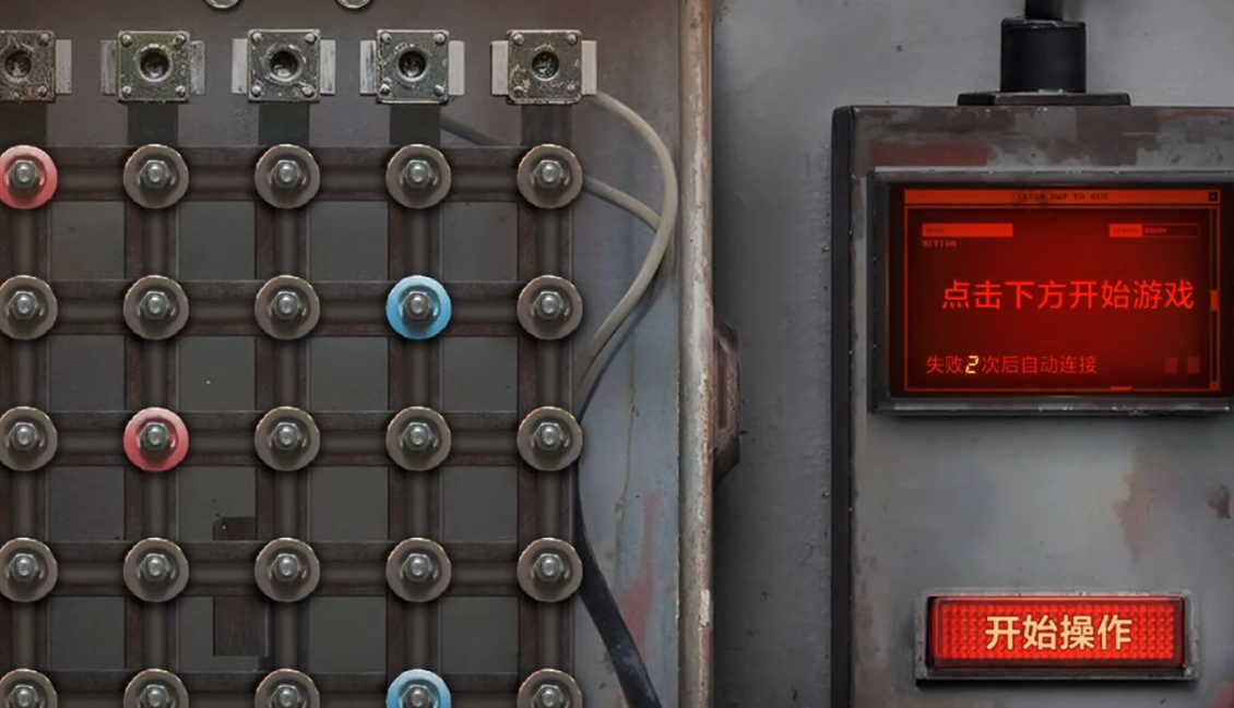 如果大家来到军事隧道的话,进入隧道后,从桥面左侧跳下,沿直线前进后右转,注意沿途的物资箱和小怪。右转后找到绿卡闸机,完成颜色连线小游戏获取绿卡,随后返回直行至绿卡门。连线小游戏,只需要将颜色相同的颜色连接起来就可以破解。