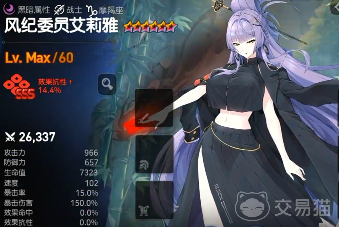 第七史诗风纪委员艾莉雅能提升自己的输出量,有着不错伤害的同时,还能给我方提升防护罩和效果抗性提升,给敌人附加消耗提升的负面,整体来看非常强力,推荐玩家们在6月19日抽取。