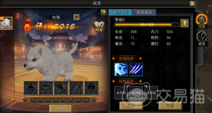 资质包括力量、敏捷、体质、智力和精神,每一项都会影响属性,大家可以通过洗练来进行突破,不过洗练过程是随机的,有需要的可以用“九转金丹”来对1到2条想要的属性进行定向洗练,最后是融合是将两只同系满级宠物进行融合,融合后有概率觉醒隐藏技,但也有一定失败的风险。