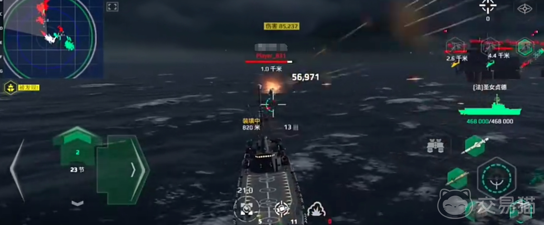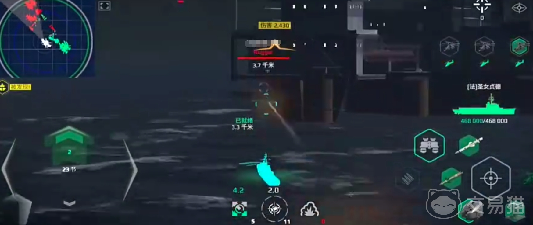 主炮配备多座高精度舰炮,射速快、精度也非常的高,适合进行远距离的消耗,不过对高防御目标输出十分的有限,缺点上很明显,机枪子弹少,持续输出能力弱,需配合导弹补充伤害才能打出想要的效果。